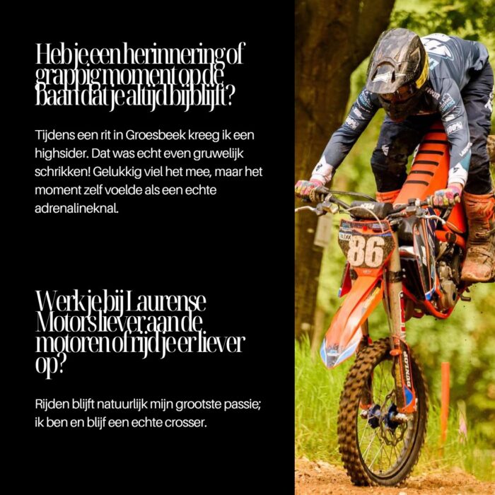 Onze rijder van de maand is iemand die motorcross leeft — op én naast de baan. Van een high sider