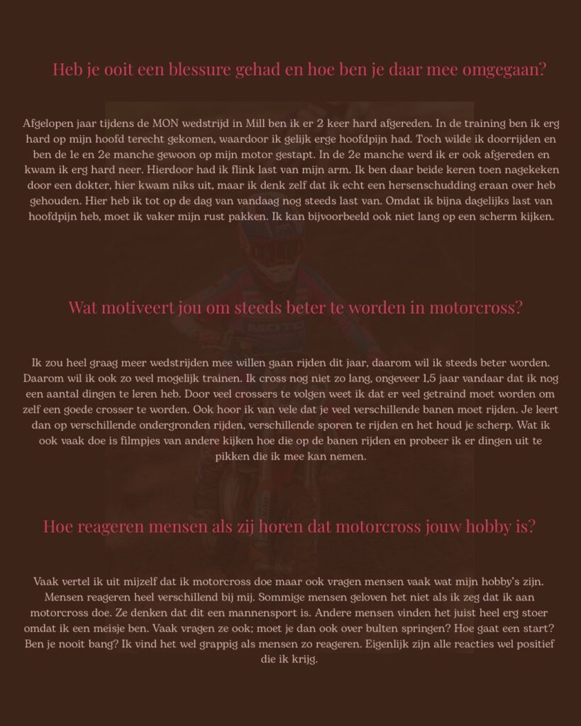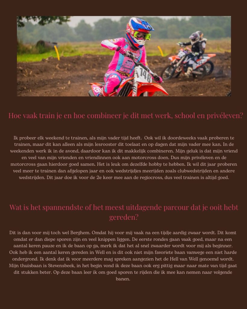 Ze zit nog niet eens zo heel lang op de motor maar is zeker gepassioneerd.