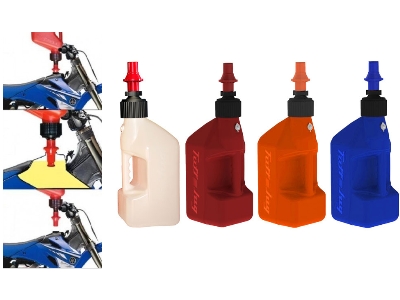 De Tuff Jug is speciaal ontworpen om gemakkelijker uw brandstof tank te kunnen vullen. Zonder dat uw tank overloopt en er onnodig brandstof wordt verspild. Géén flexibele slangen of trechters meer nodig omdat de can automatisch begint te lopen nadat u hem ondersteboven op het tankgat heeft geplaatst. Op het moment dat de tank vol is stopt de can en wordt de toevoer afgesloten waardoor u de can ( zonder dat de tank overloopt ) kan verwijderen.
